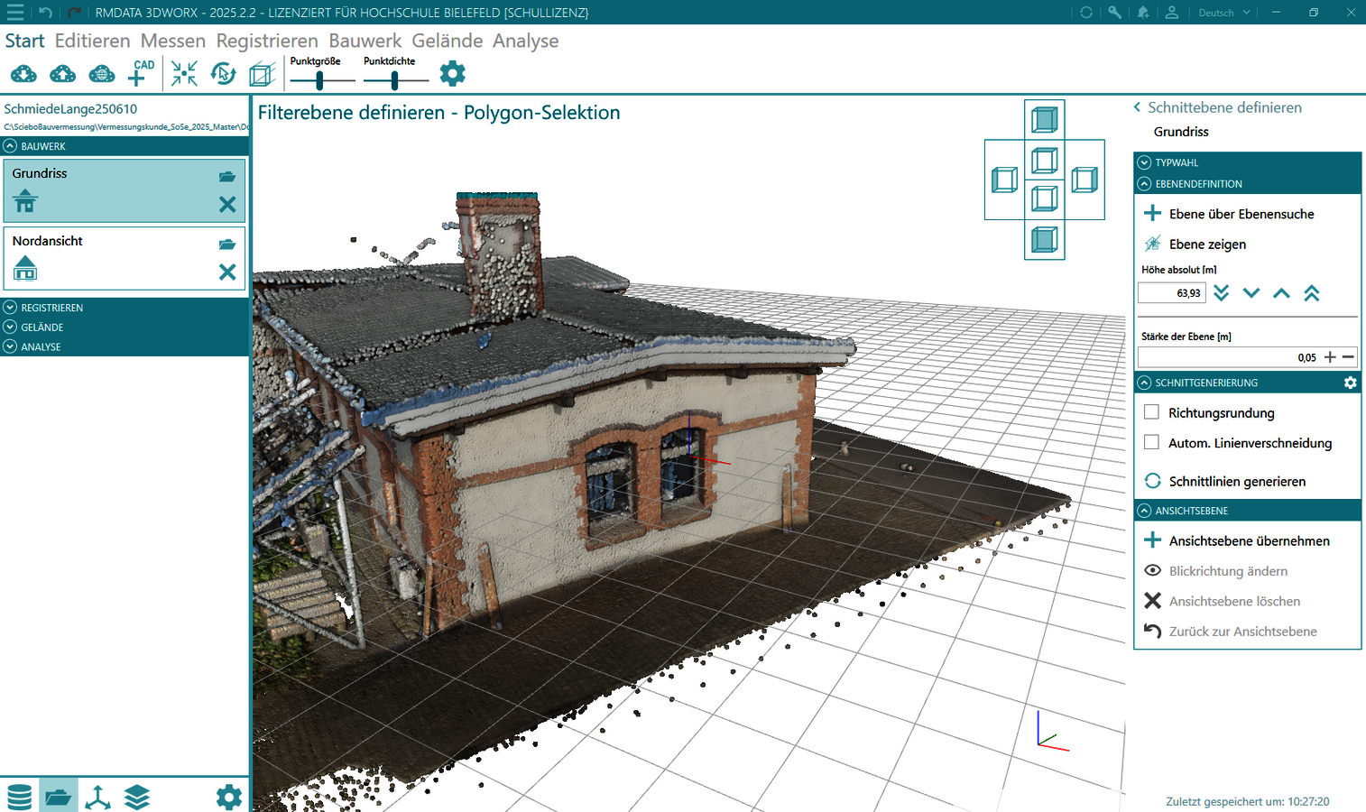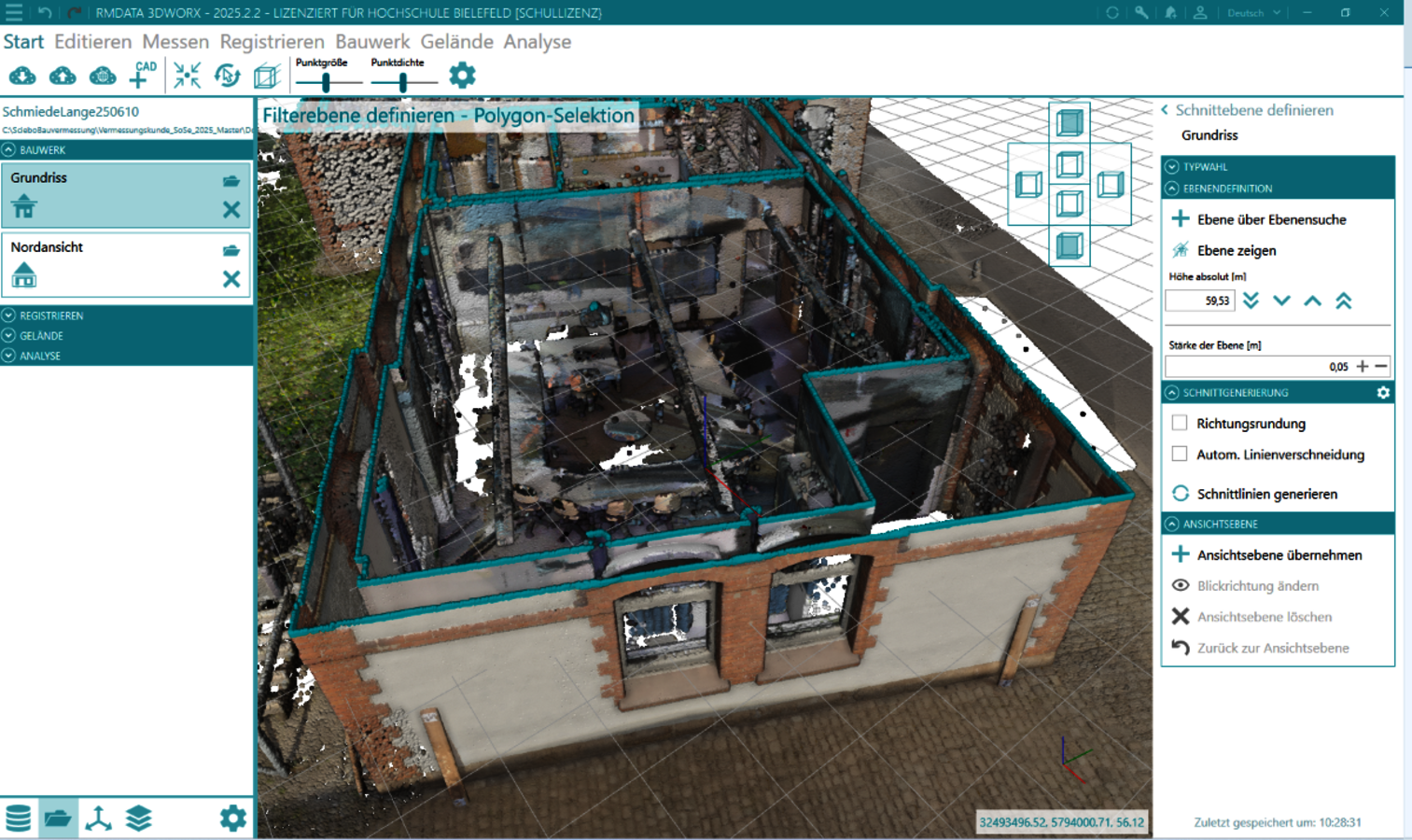 Die Hochschule Bielefeld verfolgt einen interdisziplinären und praxisorientierten Ansatz in der Lehre. Im Masterstudiengang „Integrales Bauen“ lernen Studierende, komplexe Bauprojekte ganzheitlich zu planen – mit einem Fokus auf Nachhaltigkeit und technische Innovation. Um die digitale Bestandsaufnahme realitätsnah zu vermitteln, setzen Andreas Nobbe und Christian Lange, Lehrende für Vermessungskunde, auf die Software rmDATA 3DWorx (neu: rmDATA Reality3D) und das zugehörige Revit-Plugin.