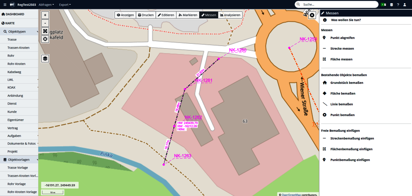 Neu ist die Möglichkeit, Objekte direkt in der Karte zu bemaßen – sei es Länge, Fläche oder Punktkoordinaten. Diese Beschriftungen bleiben bis zum Ende des Tages erhalten, lassen sich individuell gestalten und bei Bedarf ausdrucken. Damit wird der bisherige Modus Messen zu einem flexiblen Werkzeug für exakte Auskünfte.