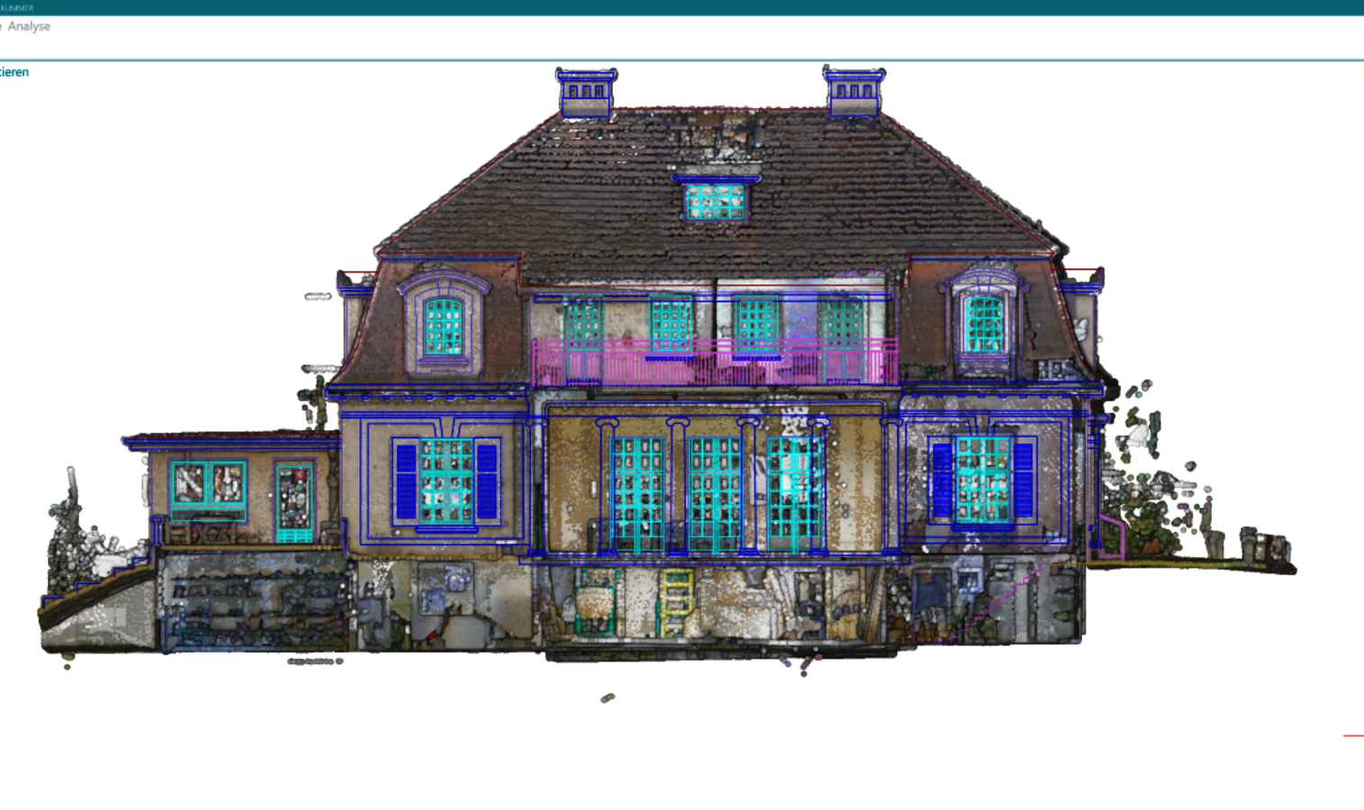 Bei einem geplanten Zubau zu einer historischen Villa stieß der planende Architekt auf die Herausforderung, dass exakte Pläne des Objektes nicht vorhanden waren. Kai Grünhagen konnte mit dem 3D-Laserscanner rasch Abhilfe schaffen und bot dem Planer und der Denkmalschutzbehörde die Erstellung umfangreicher, zweidimensionaler Fassadenansichten, Schnitte und Grundrisspläne an. Die gelieferten Pläne unterstützen die Auftraggeber bei der Visualisierung möglicher Optionen eines Zubaus optimal. Ein neues Standbein im Dienstleistungsportfolio des ÖbVI war geschaffen.