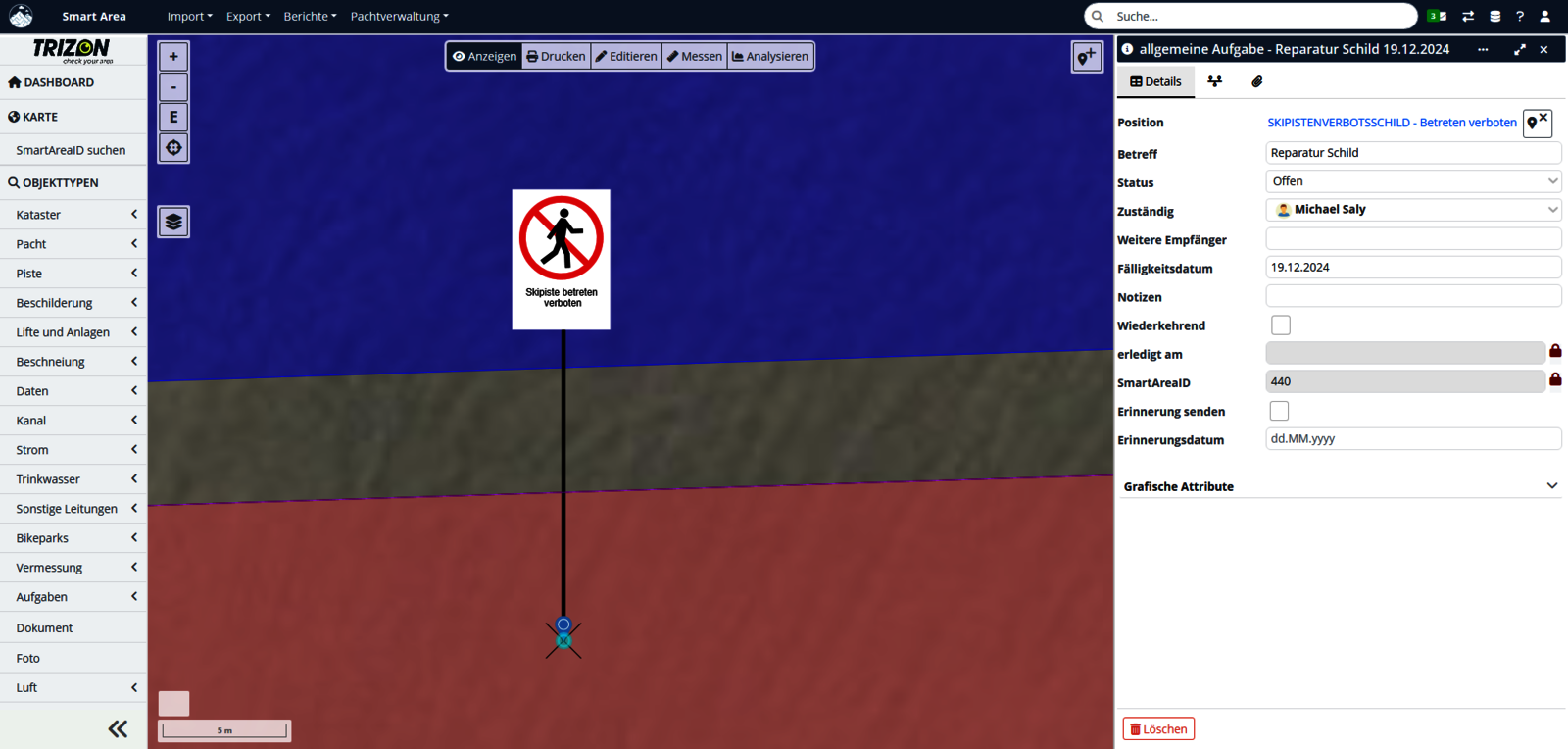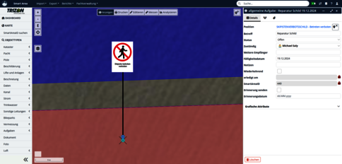 Einfache Instandhaltung direkt über die Karte durch Zuweisung von Aufgaben zu einem Infrastrukturobjekt.