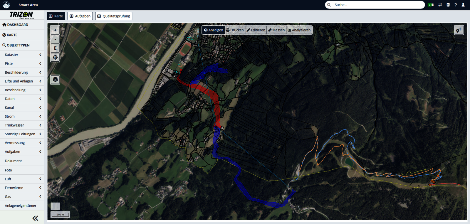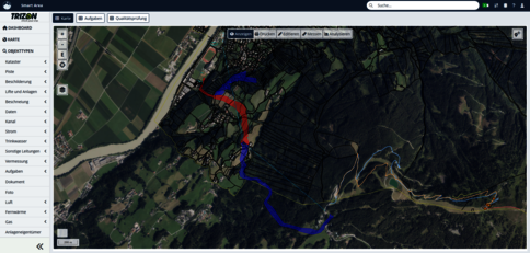 Nutzer können verschiedene Aufgabenarten flexibel erstellen, direkt mit Infrastrukturobjekten verknüpfen und als farbcodierte Pins visualisieren. Die Aufgaben können an beliebigen Positionen oder ohne Positionierung platziert werden, was eine effiziente und übersichtliche Verwaltung ermöglicht.